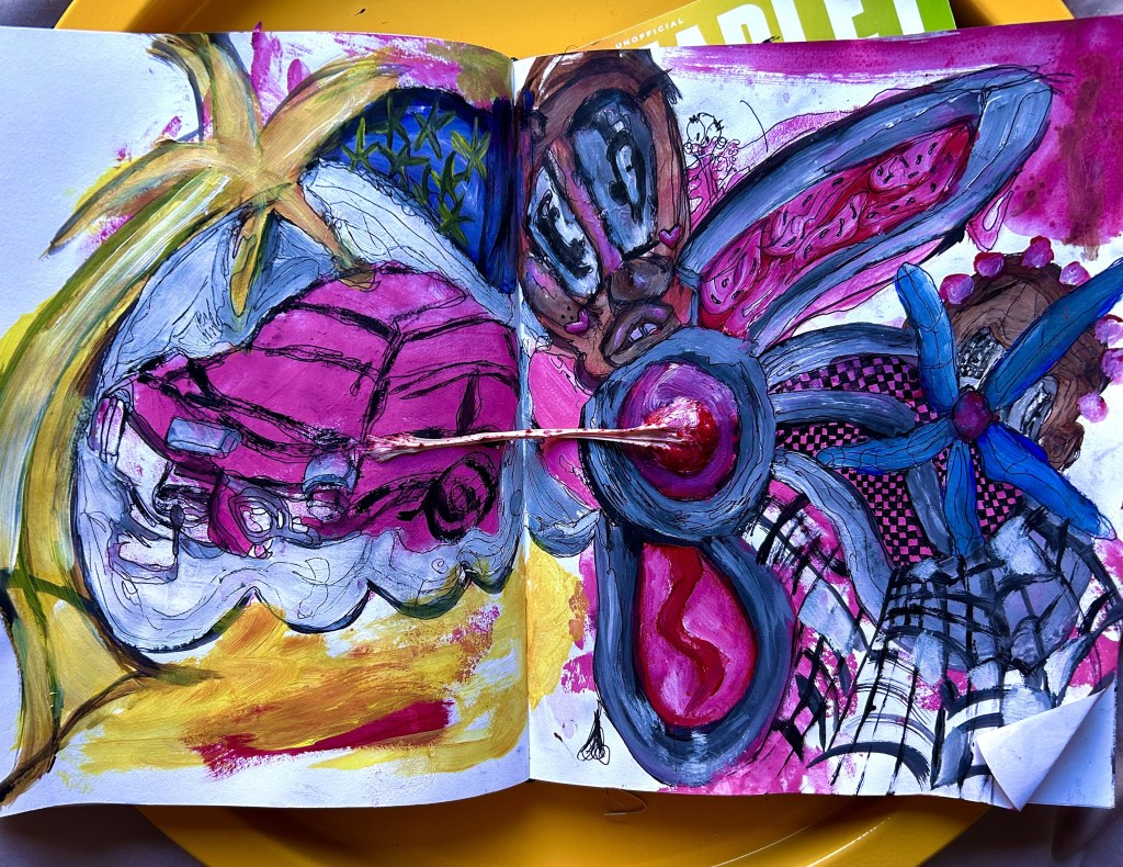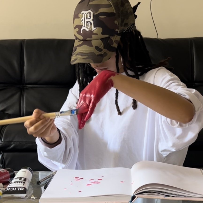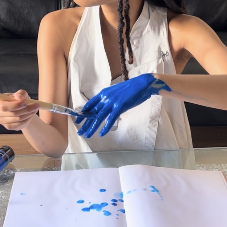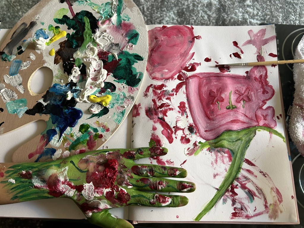 a brief painting expression starting with hands + acrylic paints, following with a paintbrush and quick interpretation of what was put down.